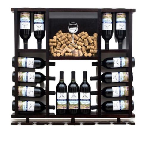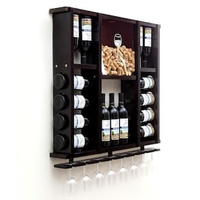 Adega de Madeira Maciça para 15 Garrafas com Porta Rolhas e Taças - Nogueira Adega em Madeira Maciça para Garrafas de Vinho com Porta Rolhas e Porta Taças Cor Nogueira - Fabricada em Madeira Maciça, Certificada e Sustentável; - Exclusivo Porta Rolhas com vidro frontal adesivado e fundo removível, facilitando a limpeza e a retirada das rolhas; - Comporta até 15 Garrafas de Vinho e 8 Taças; - Dimensões do Produto: 75cm de Altura, 80cm de comprimento e 12cm de Largura; - Acompanha Kit de Fixação; - O produto é enviado MONTADO. Garrafas e Taças não Acompanham o Produto Marca: Delenha Decor
