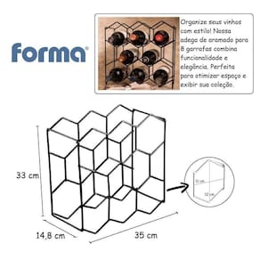 1 Adega para 8 garrafas em aramado preto 32x31,5x15cm