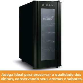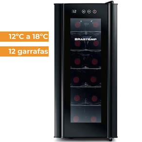 Adega de Vinho Climatizada 12 Garrafas - BrastempDescrição:A Adega Climatizada Brastemp BZC12 foi pensada para quem não abre mão de servir um bom vinho na temperatura ideal. Com capacidade para 12 garrafas e dimensões compactas, conta com iluminação interna de LED e Controle Eletrônico Touch Sensor com display de temperatura.Características:Controle de temperatura eletrônico-Touch Sensor:Adega especialmente desenhada para você que está começando a se aventurar no mundo dos vinhos. Com dimensões compactas, controle eletrônico Touch Sensor, display de temperatura, iluminação interna por LED e capacidade de 12 garrafas, é seu primeiro passo no mundo do Vinho.Iluminação LED:Com iluminação interna em LED, escolher os rótulos de uma das 12 garrafas fica ainda mais fácil. Além de funcional, a luz dá um ar mais elegante e moderno ao ambiente.Proteção dos vinhos:A temperatura interna da adega pode ser regulada entre 12 a 18C, ideal para a preservação da qualidade dos vinhos e conservação de seus aromas e sabores.AtributosMODEL: 12 GarrafasBRAND: BrastempSELLER_SKU: 20560GTIN: 7891129203556EAN: 7891129203556