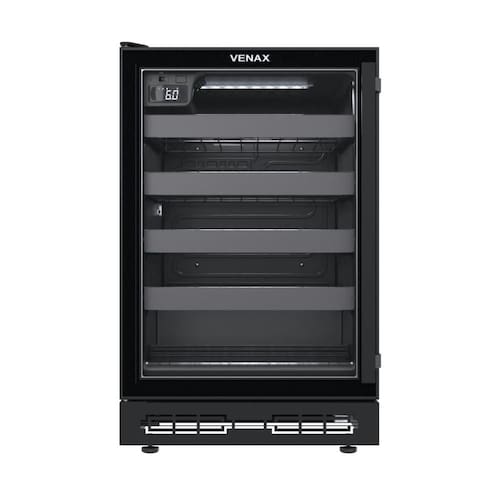 Adega de embutir com porta de vidro panorâmico e iluminação interna em LED brancoCapacidade total de garrafas