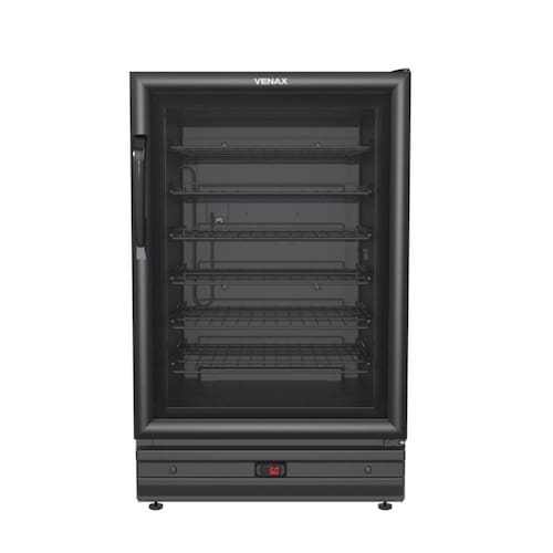 Tipo: Adega Marca: Venax Controlador de temperatura: Digital, regulável de 6C a 20C Sistema de refrigeração: Compressor Gás refrigerante: R134a Iluminação interna: Não Porta: Vidro duplo (LOW-E) Puxador da porta: Plástico Abertura da porta: Esquerda para direita Trava de abastecimento: Não Aquecimento da porta: Não Prateleiras: 6 Deslizantes Evaporador: Sem ar forçado Gabinete interno: PSAI Gabinete externo: Aço revestido com pintura eletrostática Degelo: Natural Recipiente de degelo: Sim Dreno: Traseiro Pés: Reguláveis Capacidade de armazenamento: 48 Garrafas, diâmetro máximo 90mm Medidas do produto: Altura 100cm - Largura 64cm - Profundidade 64cm