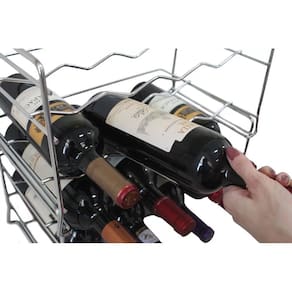 Adega Empilhável 8 Garrafas Vinho Suporte Garrafeira Horizontal. #Resistente à Ferrugem #Comporta 8 Garrafas #Adega Horizontal Garantia: 12 Meses / Peso: 920g / Cores: Grafite, Dourado e Cromado / Ref: 15125 Dimensões: 38cm (C) x 26cm (L) x 22cm (A) Diâmetro do Aramado das Laterais: 8mm Diâmetro do Aramado Interno: 5mm Capacidade: 8 Garrafas Empilhamento Máximo: 4 Adegas Observação: - Indicada para garrafas de 750ml e 1L. - Comporta garrafas com base de diâmetro máximo de 8cm. Cuidados: - Não lavar com materiais abrasivos. - Limpar com pano úmido ou detergente neutro. Material: - Aço Cromado com Pintura Epóxi que proporciona uma longa durabilidade ao produto. A Adega da linha Merlot é o produto ideal para os apreciadores de bons vinhos. Produzida em aço cromado, possui um design moderno e inovador. Este suporte garrafeira para vinhos comporta 8 garrafas, mas você pode expandir a capacidade para até 32 garrafas empilhando 4 adegas uma sobre a outra. Seus vinhos ficarão na posição horizontal que é a mais recomendada para a conservação dos seus vinhos. Pode ser utilizada na cozinha, salas de jantar, varandas, espaços corporativos e em todos esses ambientes trará praticidade e beleza.