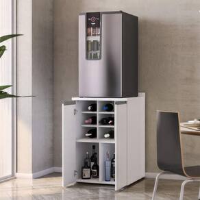 Que tal a Adega Eron? As suas bebidas favoritas ganharão um novo espaço com a Adega Eron, uma peça funcional que vai te acompanhar nos momentos de descontração com amigos e família. Com nichos específicos para acomodar suas garrafas favoritas, ela é de grande ajuda para manter tudo bem organizado e pronto para as reuniões especiais. Além disso, a peça tem tampo, que recebe mais objetos e serve de apoio para o preparo de drinks Somado a toda essa utilidade, o design também chama a atenção: cores neutras e estrutura clássica compõem qualquer ambiente com elegância, seja a sala de jantar, estar ou aquele cômodo reservado especialmente para comemorações. Agora, é só juntar todo mundo e aproveitar! Marca: Modern