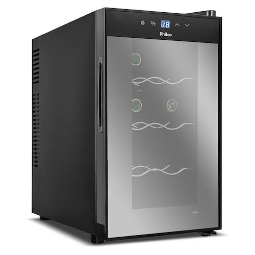 A Adega Philco PAD8 Display Digital vai deixar os melhores momentos ainda mais especiais. Com capacidade para 8 garrafas, possui sistema de refrigeração por placa termoelétrica que mantém facilmente seus vinhos na temperatura ideal. O controle de temperatura é eletrônico através de display digital e pode ser ajustado entre 10 graus a 18 graus.