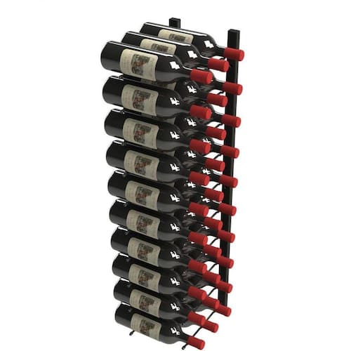 Este lindo suporte para garrafas, além de ser muito prático e funcional é também um objeto de decoração. Esta adega para vinhos comporta 30 garrafas. Seus vinhos ficam armazenados na posição correta pois nossos garrafeiros foram projetados para esta finalidade. Não trata-se apenas de uma prateleira para vinho. São suportes projetados especificamente para sua adega. São garrafeiros que podem ser montados no piso (compra dos pés opcional e em separado) ou na parede. Estes suportes são apropriados para Adega Comercial, Adega Residencial, Adega Climatizada ou simplesmente instalados na parede naquele espaço que você adora. Material: Os garrafeiros são fabricados em aço, possuem acabamento com pintura eletrostática na cor preta, são discretos e dessa forma valorizam as suas garrafas de vinho. Dimensões: Cada coluna mede, olhando de frente para a mesma, 3 cm (largura) x 100 cm (altura) x 31 cm (profundidade). Esse produto é composto por duas colunas que devem ser instaladas uma ao lado da outra com uma distância entre centros de 19 cm aproximadamente. Imagens das garrafas meramente ilustrativas e não acompanham o produto