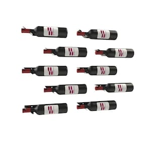 Este lindo suporte para garrafas, além de ser muito prático e funcional é também um objeto de decoração. Esta adega para vinhos comporta 1 garrafas. O nosso kit é composto de 5 unidades Seus vinhos ficam armazenados na posição correta pois nossos garrafeiros foram projetados para esta finalidade. Não trata-se apenas de uma prateleira para vinho. São suportes projetados especificamente para sua adega. São garrafeiros que podem ser montados na parede. Material: Os garrafeiros são fabricados em aço, possuem acabamento com pintura eletrostática na cor preta, são discretos e dessa forma valorizam as suas garrafas de vinho. Dimensões: Olhando de frente este suporte mede, sem garrafas, cada unidade mede 13cm largura x 5 cm altura x 8 cm de profundidade.
