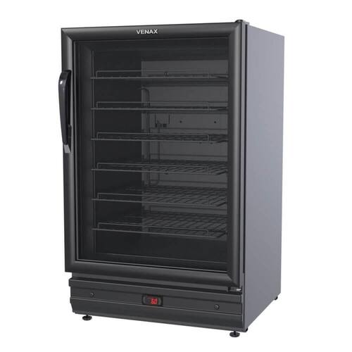 Adega Venax para 48 garrafas, 175L, display digital regulável de 6°C a 20°C, sistema de refrigeração por compressor, porta de vidro duplo LOW-E, gabinete com pintura eletrostática.Capacidade total de garrafas