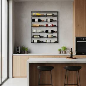 Organize e valorize suas garrafas com uma adega de parede estilo industrial.