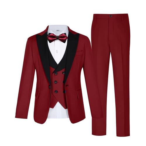 Este conjunto de terno masculino de 5 peças combina estilo, conforto e funcionalidade, tornando-o a escolha ideal para várias ocasiões formais e semiformais. - Ternos de 5 peças para meninos da Supper Value: blazer, colete, calça, camisa e gravata borboleta. - Ocasião: ternos formais masculinos perfeitos para cerimônias de casamento, apresentações de piano, cerimônia de premiação e assim por diante; também são uma boa ideia para algumas atividades menos formais, como festas de aniversário, fantasias de Natal (vestir-se como um pequeno anfitrião) etc. - Moda e estilo: o conjunto clássico de roupas masculinas é perfeito para casamentos ou festas. Modo de uso recomendado: combinado com uma gravata ou gravata borboleta pode mostrar a elegância de seus meninos. Quando você usa uma camiseta em vez de uma camisa social, o terno pode ser um vestido casual. - Materiais seguros e confortáveis: mistura de poliéster, respirável, antirrugas, sem passar a ferro, não desbota, mais fácil de lavar e manter a forma. - Calças com cintura ajustável: os elásticos estão nos dois lados, ajustam a cintura para que as calças caibam melhor, não se preocupe com a linda barriga gorda do bebê.