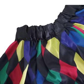 A Saia de Palhaço Adulta Curta é feita em materiais de ótima qualidade para trazer uma melhor experiência, ela conta com 40 centímetros de comprimento e 25 centímetros de largura relaxada, esticada conta com 50 centímetros. Ela leva uma estampa quadriculada colorida contando com esses detalhes para uma melhor representação de um palhaço. Também conta com uma barra de Tule preta.