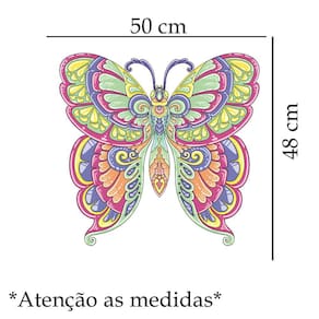 Adeseivo para parede mandala - borboleta Medida: 50 x 48 cm As imagens anunciadas são ilustrativas Tamanho do adesivo O adesivo da foto parece grande Então atenção: O modelo que está na foto não se refere ao tamanho do adesivo anunciado. deixamos o adesivo grande para que você possa visualizar melhor o produto que está comprando