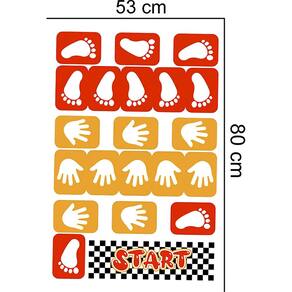 Adesivo amarelinha mãos e pés educativo Medida: 53 x 80 cm As imagens anunciadas são ilustrativas Tamanho do adesivo O adesivo da foto parece grande Então atenção: O modelo que está na foto não se refere ao tamanho do adesivo anunciado. deixamos o adesivo grande para que você possa visualizar melhor o produto que está comprando Vantagens: - já vai recortado - fácil aplicação e sem sujeira, não precisa de cola. - acompanha manual impresso. - renovação do ambiente. É o fim das paredes brancas, sem vida Onde aplicar Em qualquer superfície lisa. Onde não aplicar Paredes úmidas, superfícies porosas, com relevo, com texturas, irregularidades ou com infiltrações. Local para aplicação: aplique onde sua imaginação mandar paredes, móveis, revestimentos, azulejos, tetos, janelas, portas, vitrines, vidraças, , carros, notebook, banheiro, geladeira e muito mais. Marca: Não Informado