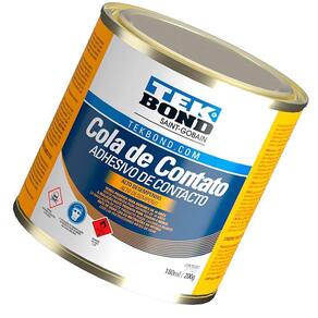 DESCRIÇÃO O Adesivo Cola Contato Tekbond 200g Sapateiro Marceneiro é um adesivo de contato à base de borracha de policloropreno desenvolvido para a colagem de vários tipos de materiais entre si (ex.: madeira-madeira; couro-couro) ou combinados (ex.: madeira-couro). Fácil de usar, oferece secagem rápida, boa resistência à água e excelente resistência inicial. Indicada para a colagem de laminados decorativos, pisos de borracha, couro, metais, lambris e diversos materiais sintéticos em madeiras compensadas, aglomerados, MDF e diversos substratos. DETALHES É indicada para a colagem de diversos tipos de materiais como laminados decorativos, pisos de borracha, couro, metais, madeiras, entre outros. ESPECIFICAÇÕES Aparência (visual/ cor): Líquido viscoso âmbar Viscosidade Brookfield a 23 ±2 C: 2.100 ~ 3.100 cps Teor de sólidos: 21±1% Odor: Solvente Temperatura de aplicação recomendada: 25±5 C Densidade a 23 ±2 C: 1,10 ± 0,02 g/mL CARACTERÍSTICAS Certifique-se de que as superfícies a serem coladas estejam secas e limpas (livres de poeira, gordura ou qualquer resquício de oleosidade). Caso a superfície de colagem não seja porosa ou nivelada, recomendamos que você lixe a peça para propiciar melhor ancoragem da cola. Mexa o adesivo antes de usar. Em seguida, aplique uma camada uniforme de cola em ambas as superfícies a ser coladas com uma espátula dentada, pincel de cerdas duras ou rolo de lã de carneiro. Para materiais mais porosos, é indicada uma segunda aplicação após 20 minutos da primeira demão. Aguarde o tempo de secagem da cola em ambas as superfícies de 15 a 30 minutos. Esse tempo pode variar conforme a temperatura e a ventilação do ambiente. OBS.: verificar com a ponta dos dedos se há aderência. Os dedos não devem ficar com resíduos da cola. Faça a união das peças apenas após a secagem, pressionando do centro para as pontas, evitando assim a formação de bolhas. Após o uso, feche bem a embalagem do produto, para prolongar sua vida útil. Não teste a resistência da colagem antes de 48 horas após a pressão. O tempo de cura total é de 7 dias.AS IMAGENS SÃO MERAMENTE ILUSTRATIVAS