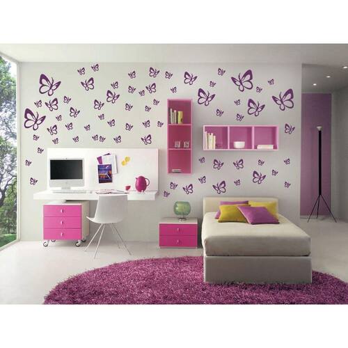 Cor: Roxo Tamanho altura x largura : O kit contem 68 borboletas 4 borboleta de - 15cm 2 borboleta de - 12cm 6 borboleta de - 9cm 10 borboleta de - 7cm 20 borboleta de - 5cm 26 borboleta de - 4cm Dica de aplicação: limpe o local com um pano úmido, certifique-se de retirar todo o pó da parede para melhor fixação do produto. Enviamos manual e temos vídeo que ensina aplicar, de fácil aplicação