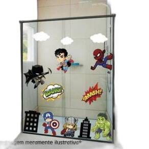 Adesivo de box de banheiro mini super heróis Mini heróis: normal Atenção as medidas Os adesivos decorativos são produzidos com material de alta qualidade. As imagens anunciadas são ilustrativas