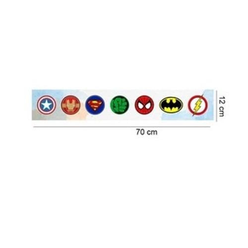 Adesivo de box faixa super heróis Medidas: 70 x 12 cm Atenção as medidas Os adesivos decorativos são produzidos com material de alta qualidade. As imagens anunciadas são ilustrativas