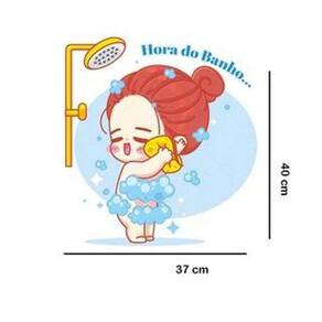 Adesivo de box hora do banho Medida: 37 x 40 cm Atenção as medidas Os adesivos decorativos são produzidos com material de alta qualidade. As imagens anunciadas são ilustrativas Tamanho do adesivo O adesivo da foto parece grande Então atenção: O modelo que está na foto não se refere ao tamanho do adesivo anunciado. deixamos o adesivo grande para que você possa visualizar melhor o produto que está comprando