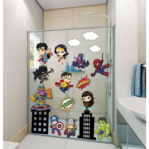 Adesivo de box super-heróis mod 2 Atenção as medidas Os adesivos decorativos são produzidos com material de alta qualidade. As imagens anunciadas são ilustrativas