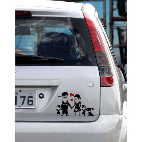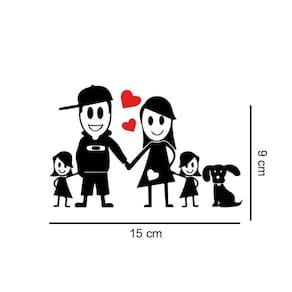 Adesivo de carro família feliz casal + 2 filhas + cachorro Atenção as medidas Os adesivos decorativos são produzidos com material de alta qualidade. As imagens anunciadas são ilustrativas