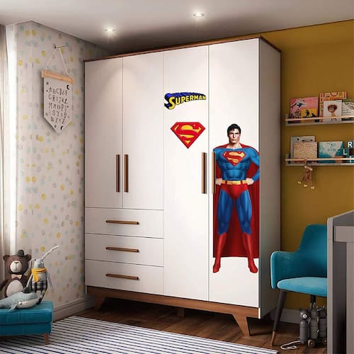 Adesivo de guarda roupa super man Medida: 17 x 80 cm As imagens anunciadas são ilustrativas Tamanho do adesivo O adesivo da foto parece grande