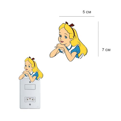 Adesivo de interruptor alice no país das maravilhas mod02 As imagens anunciadas são ilustrativas Tamanho do adesivo O adesivo da foto parece grande