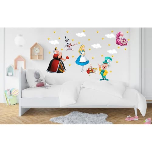 Adesivo de parede alice no pais das maravilhas Medida: 95 x 57 cm As imagens anunciadas são ilustrativas Tamanho do adesivo O adesivo da foto parece grande Então atenção: O modelo que está na foto não se refere ao tamanho do adesivo anunciado. deixamos o adesivo grande para que você possa visualizar melhor o produto que está comprando Vantagens: - já vai recortado - fácil aplicação e sem sujeira, não precisa de cola. - acompanha manual impresso. - renovação do ambiente. É o fim das paredes brancas, sem vida Onde aplicar Em qualquer superfície lisa. Onde não aplicar Paredes úmidas, superfícies porosas, com relevo, com texturas, irregularidades ou com infiltrações. Local para aplicação: aplique onde sua imaginação mandar paredes, móveis, revestimentos, azulejos, tetos, janelas, Portas, vitrines, vidraças, , carros, notebook, banheiro, geladeira e muito mais. Marca: Não Informado