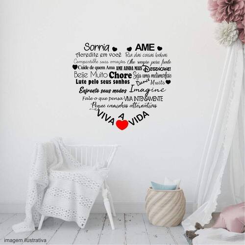 Adesivo de parede ame a vida As imagens anunciadas são ilustrativas Tamanho do adesivo O adesivo da foto parece grande Então atenção: O modelo que está na foto não se refere ao tamanho do adesivo anunciado. deixamos o adesivo grande para que você possa visualizar melhor o produto que está comprando