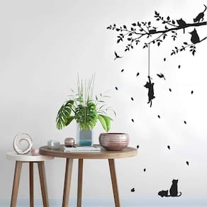 Adesivo de parede arvore e gato Medida: 67 x 90 cm As imagens anunciadas são ilustrativas Tamanho do adesivo O adesivo da foto parece grande Então atenção: O modelo que está na foto não se refere ao tamanho do adesivo anunciado. deixamos o adesivo grande para que você possa visualizar melhor o produto que está comprando