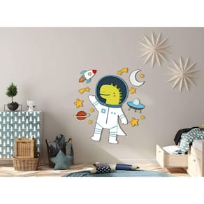 Adesivo de parede astronauta dino baby Medida: 37 x 40 cm As imagens anunciadas são ilustrativas Tamanho do adesivo O adesivo da foto parece grande