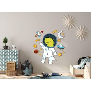 Adesivo de parede astronauta dino baby Medida: 65 x 70 cm As imagens anunciadas são ilustrativas Tamanho do adesivo O adesivo da foto parece grande Então atenção: O modelo que está na foto não se refere ao tamanho do adesivo anunciado. deixamos o adesivo grande para que você possa visualizar melhor o produto que está comprando Vantagens: - já vai recortado - fácil aplicação e sem sujeira, não precisa de cola. - acompanha manual impresso. - renovação do ambiente. É o fim das paredes brancas, sem vida Onde aplicar Em qualquer superfície lisa. Onde não aplicar Paredes úmidas, superfícies porosas, com relevo, com texturas, irregularidades ou com infiltrações. Local para aplicação: aplique onde sua imaginação mandar paredes, móveis, revestimentos, azulejos, tetos, janelas, portas, vitrines, vidraças, , carros, notebook, banheiro, geladeira e muito mais. Marca: Lojinha Da Luc Adesivos Ean: 8001250002723