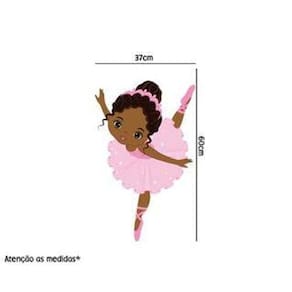 Adesivo de parede bailarina mod05 Medida: 37 x 60 cm As imagens anunciadas são ilustrativas Tamanho do adesivo O adesivo da foto parece grande Então atenção: O modelo que está na foto não se refere ao tamanho do adesivo anunciado. deixamos o adesivo grande para que você possa visualizar melhor o produto que está comprando