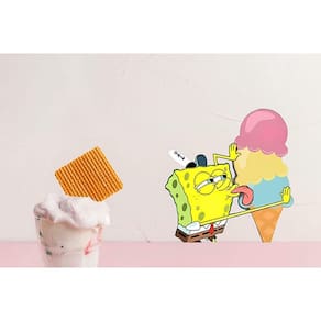 Adesivo de parede bob tomando sorvete Medida: 67 x 70 cm As imagens anunciadas são ilustrativas Tamanho do adesivo O adesivo da foto parece grande