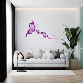 Adesivo de parede borboleta floral Medida: 100 x 64 cm As imagens anunciadas são ilustrativas Tamanho do adesivo O adesivo da foto parece grande Então atenção: O modelo que está na foto não se refere ao tamanho do adesivo anunciado. deixamos o adesivo grande para que você possa visualizar melhor o produto que está comprando