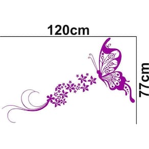 Adesivo de parede borboleta floral Medida: 120 x 77 cm As imagens anunciadas são ilustrativas Tamanho do adesivo O adesivo da foto parece grande Então atenção: O modelo que está na foto não se refere ao tamanho do adesivo anunciado. deixamos o adesivo grande para que você possa visualizar melhor o produto que está comprando