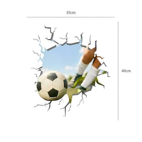 Adesivo de parede buraco falso futebol Medida: 35 x 40 cm As imagens anunciadas são ilustrativas Tamanho do adesivo O adesivo da foto parece grande