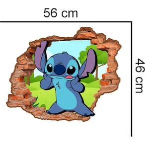 Adesivo de parede buraco falso stitch mod 01 Medida: 56 x 46 cm As imagens anunciadas são ilustrativas Tamanho do adesivo O adesivo da foto parece grande Então atenção: O modelo que está na foto não se refere ao tamanho do adesivo anunciado. deixamos o adesivo grande para que você possa visualizar melhor o produto que está comprando