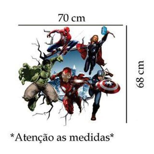 Adesivo de parede buraco falso vingadores mod03 Medida: 70 x 61 cm Atenção as medidasOs adesivos decorativos são produzidos com material de alta qualidade.As imagens anunciadas são ilustrativas Tamanho do adesivoO adesivo da foto parece grandeEntão atenção:O modelo que está na foto não se refere ao tamanho do adesivo anunciado. deixamos o adesivo grande para que você possa visualizar melhor o produto que está comprando Material Vinil adesivo. É só destacar e colar Nossos adesivos são específicos para superfícies lisas, por isso se adequam a paredes, vidros, madeiras e demais superfícies sem texturas. Importante lembrar de conferir que o local para aplicação está devidamente limpo, sem poeiras, gorduras ou demais resíduos. Todos os nossos produtos são enviados com manual de instruções e dicas para aplicação. As imagens anunciadas são ilustrativas Pode haver variações na cor de acordo com as configurações do seu monitor. Confira todas as informações como medidas e quantidade na descrição do produto. Marca: Lojinha Da Luc