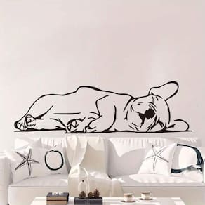 Adesivo de parede cachorro dormindo As imagens anunciadas são ilustrativas Tamanho do adesivo O adesivo da foto parece grande Então atenção: O modelo que está na foto não se refere ao tamanho do adesivo anunciado. deixamos o adesivo grande para que você possa visualizar melhor o produto que está comprando