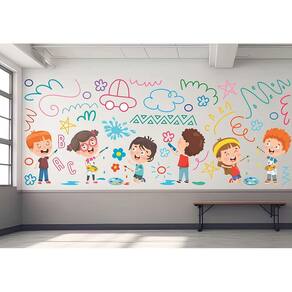 Adesivo de parede cantinho da arte mod02 Medida: 200 x 79 cm As imagens anunciadas são ilustrativas Tamanho do adesivo O adesivo da foto parece grande