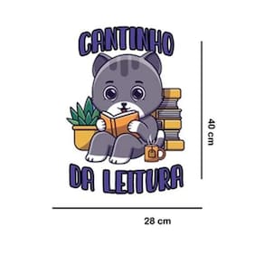 Adesivo de parede cantinho da leitura - gato Medida: 28 x 40 cm As imagens anunciadas são ilustrativas Tamanho do adesivo O adesivo da foto parece grande Então atenção: O modelo que está na foto não se refere ao tamanho do adesivo anunciado. deixamos o adesivo grande para que você possa visualizar melhor o produto que está comprando Vantagens: - já vai recortado - fácil aplicação e sem sujeira, não precisa de cola. - acompanha manual impresso. - renovação do ambiente. É o fim das paredes brancas, sem vida Onde aplicar Em qualquer superfície lisa. Onde não aplicar Paredes úmidas, superfícies porosas, com relevo, com texturas, irregularidades ou com infiltrações. Local para aplicação: aplique onde sua imaginação mandar paredes, móveis, revestimentos, azulejos, tetos, janelas, Portas, vitrines, vidraças, , carros, notebook, banheiro, geladeira e muito mais. Marca: Não Informado