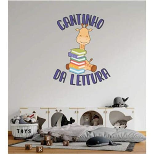 Adesivo de parede cantinho da leitura - girafa Medida: 42 x 60 cm As imagens anunciadas são ilustrativas Tamanho do adesivo O adesivo da foto parece grande Então atenção: O modelo que está na foto não se refere ao tamanho do adesivo anunciado. deixamos o adesivo grande para que você possa visualizar melhor o produto que está comprando