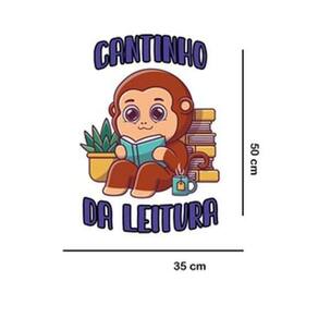 Adesivo de parede cantinho da leitura - macaquinho Medida: 35 x 50 cm As imagens anunciadas são ilustrativas Tamanho do adesivo O adesivo da foto parece grande Então atenção: O modelo que está na foto não se refere ao tamanho do adesivo anunciado. deixamos o adesivo grande para que você possa visualizar melhor o produto que está comprando