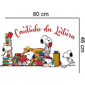 Adesivo de parede cantinho da leitura - snoopy Medida: 80 x 46 cm As imagens anunciadas são ilustrativas Tamanho do adesivo O adesivo da foto parece grande Então atenção: O modelo que está na foto não se refere ao tamanho do adesivo anunciado. deixamos o adesivo grande para que você possa visualizar melhor o produto que está comprando