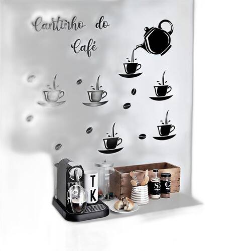 Adesivo de parede cantinho do café As imagens anunciadas são ilustrativas Tamanho do adesivo O adesivo da foto parece grande Então atenção: O modelo que está na foto não se refere ao tamanho do adesivo anunciado. deixamos o adesivo grande para que você possa visualizar melhor o produto que está comprando Vantagens: - já vai recortado - fácil aplicação e sem sujeira, não precisa de cola. - acompanha manual impresso. - renovação do ambiente. É o fim das paredes brancas, sem vida Onde aplicar Em qualquer superfície lisa. Onde não aplicar Paredes úmidas, superfícies porosas, com relevo, com texturas, irregularidades ou com infiltrações. Local para aplicação: aplique onde sua imaginação mandar paredes, móveis, revestimentos, azulejos, tetos, janelas, portas, vitrines, vidraças, , carros, notebook, banheiro, geladeira e muito mais. Marca: Não Informado Ean: 8001250003669