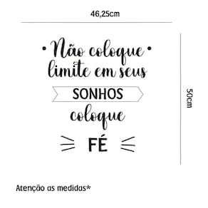 Adesivo de parede coloque fé Medida: 46 x 50 cm As imagens anunciadas são ilustrativas Tamanho do adesivo O adesivo da foto parece grande