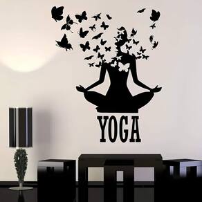 Adesivo de parede de yoga meditação com borboletas Medida: 60 x 80 cm As imagens anunciadas são ilustrativas Tamanho do adesivo O adesivo da foto parece grande