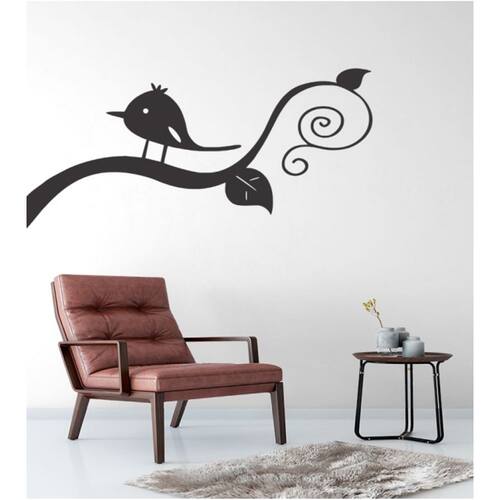 Adesivo de parede decal galho com folhas abstratas e passarinho