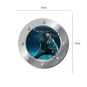 Adesivo de parede escotilha aquaman Medida: 70 x 70 cm As imagens anunciadas são ilustrativas Tamanho do adesivo O adesivo da foto parece grande