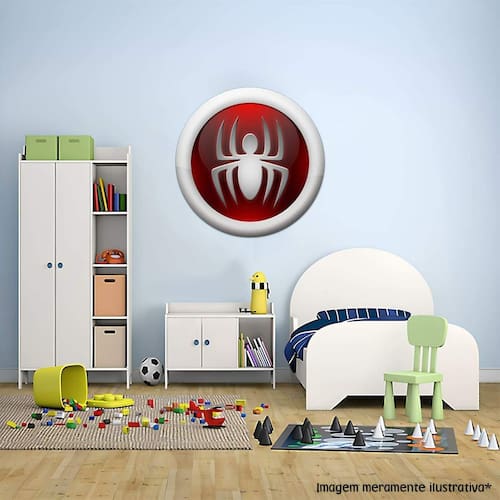 Adesivo de parede escudo do homem aranha Medida: 60 x 60 cm As imagens anunciadas são ilustrativas Tamanho do adesivo O adesivo da foto parece grande
