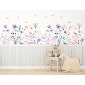 Adesivo de Parede Florais Jardim Floral Boho e Borboletas Adesivo de Parede Florais Jardim Floral Boho e Borboletas